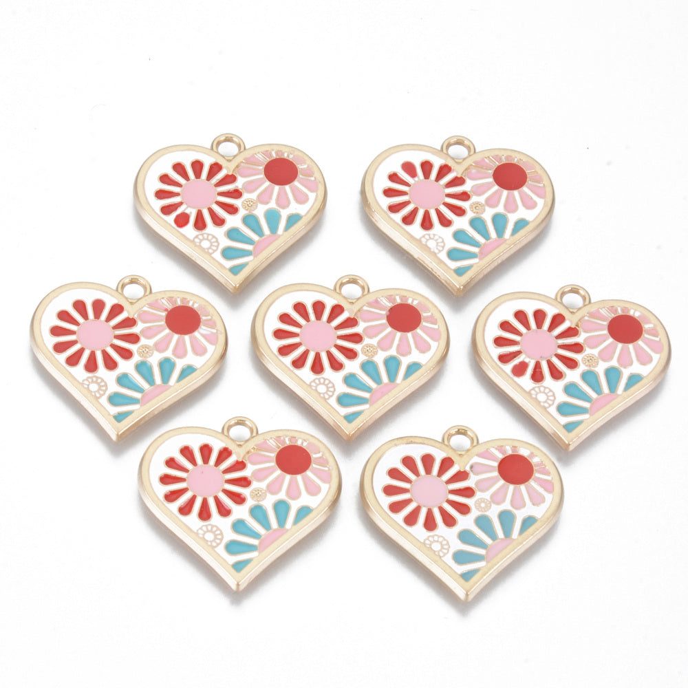 22mm Pink, Red, and Blue Flowers in White Heart Charm G2